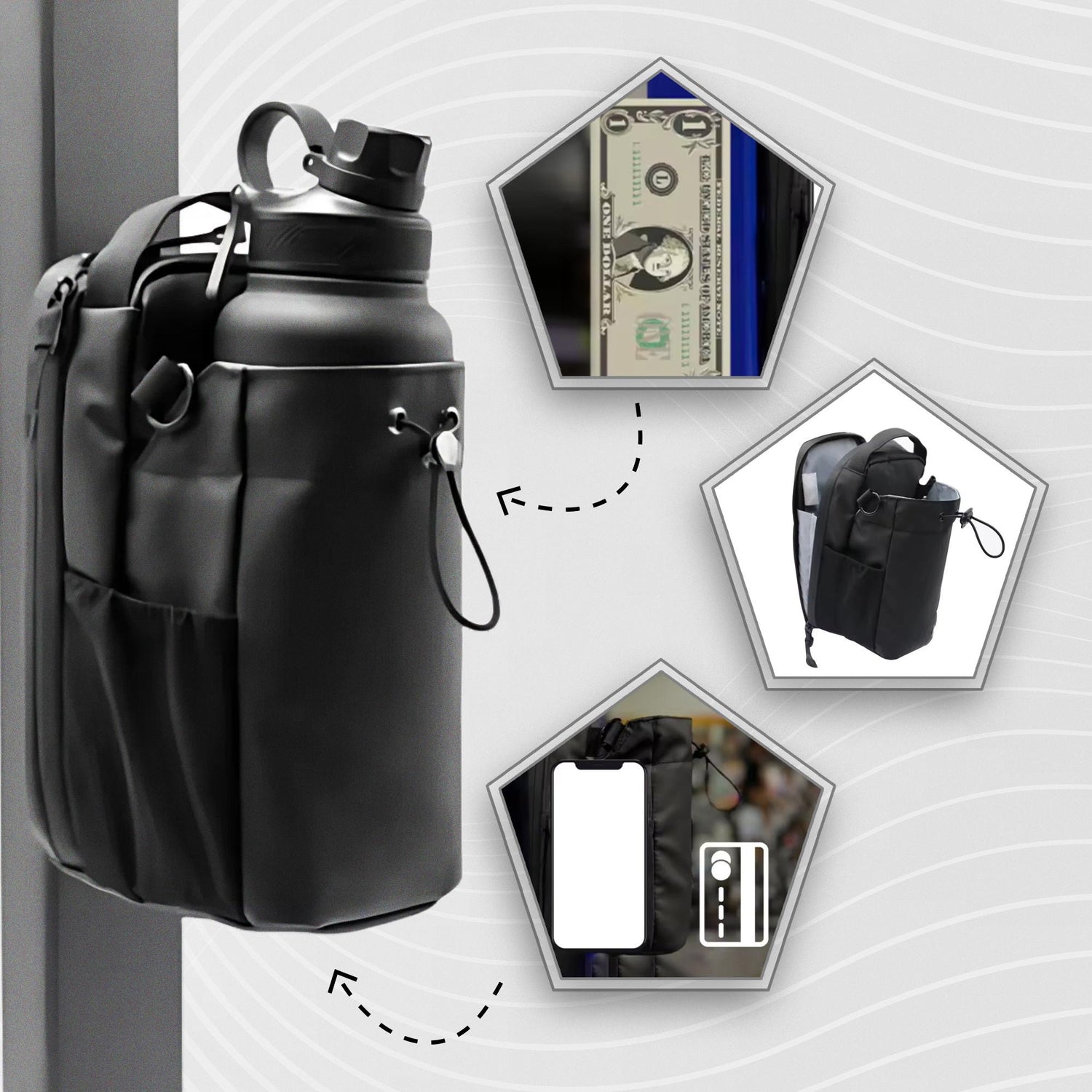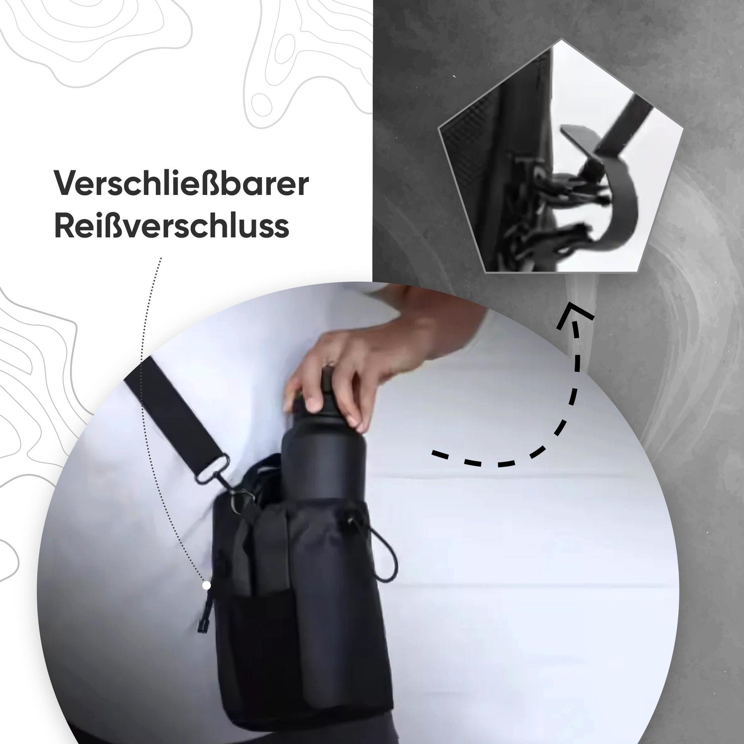 Die Tasche hält deine Wasserflasche griffbereit auf Augenhöhe - perfekt für schnelle Trinkpausen, ohne die Trainingsroutine zu unterbrechen.